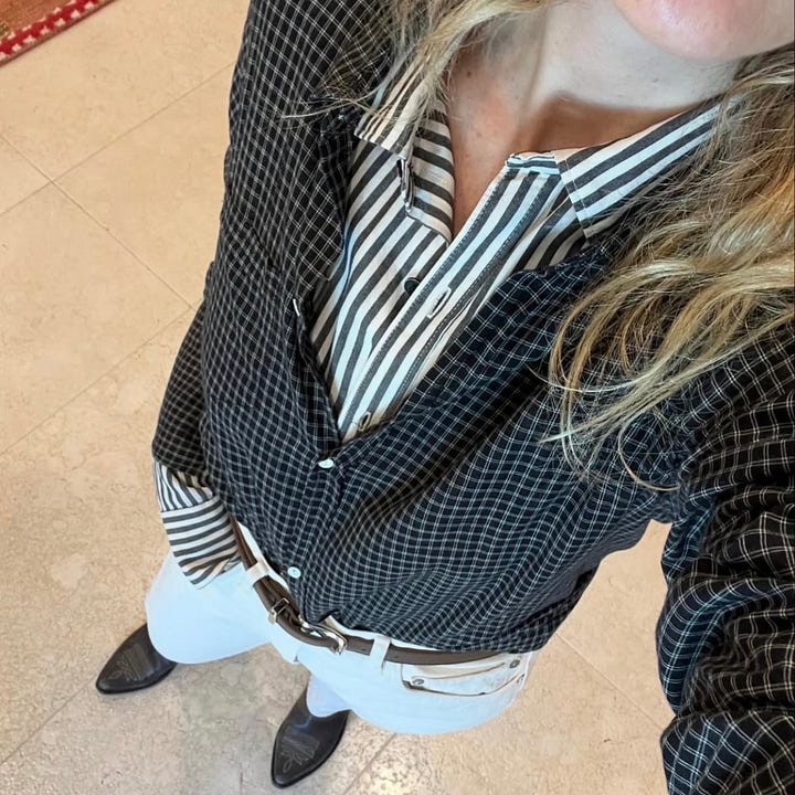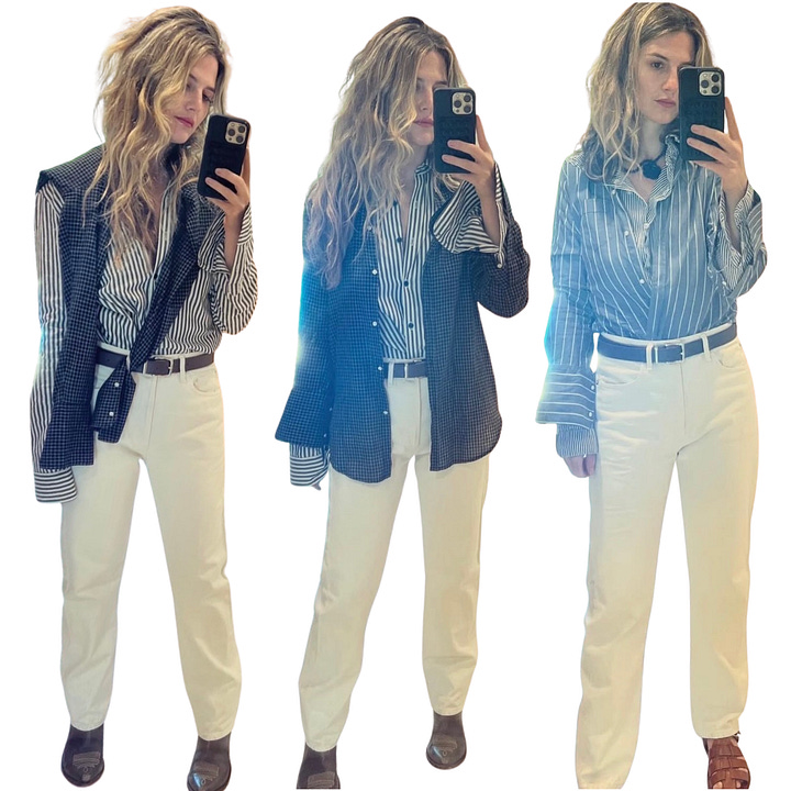 I don’t have one single “best” button-down. I love the gamut: boyfriend fits, a classic fitted version (this one is interesting), oversized options and many of my clients love the TWP cropped versions, depending on the mood. The only detail I try to avoid is a double chest pocket. It leans too Western for me and adds too much width through the chest, which makes me look at nothing else.