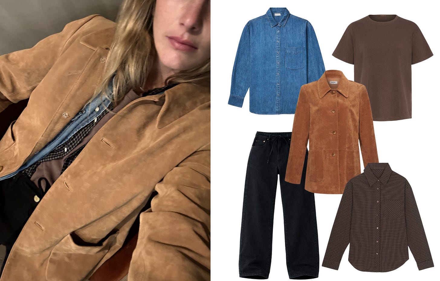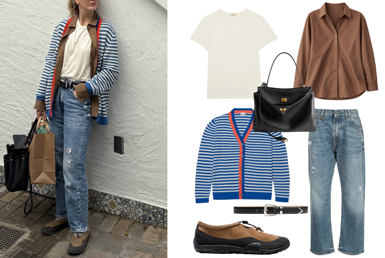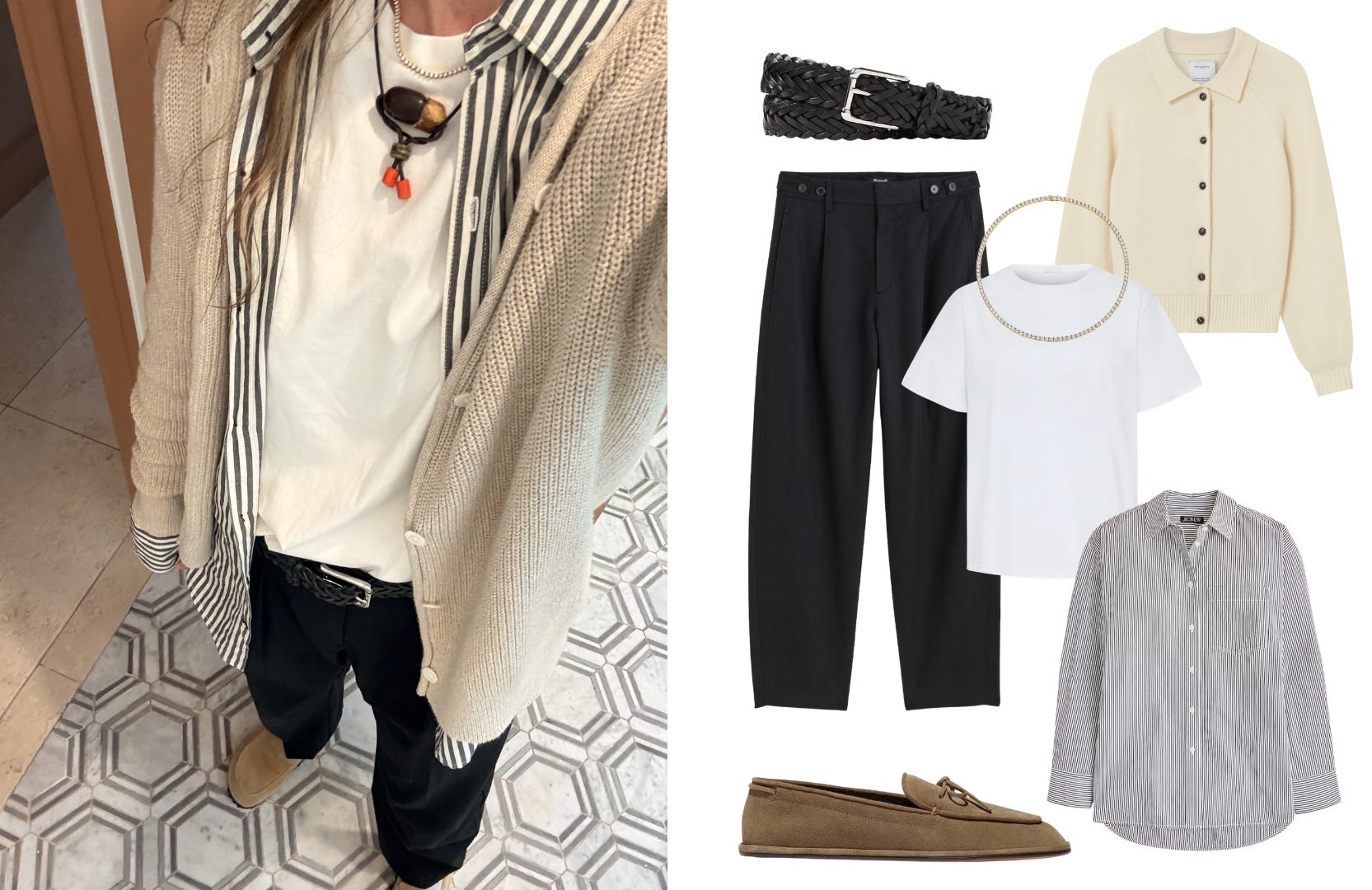 The button-down is the Jarlsberg. The tee and the jacket (or oversized cardigan) are the ciabatta.
