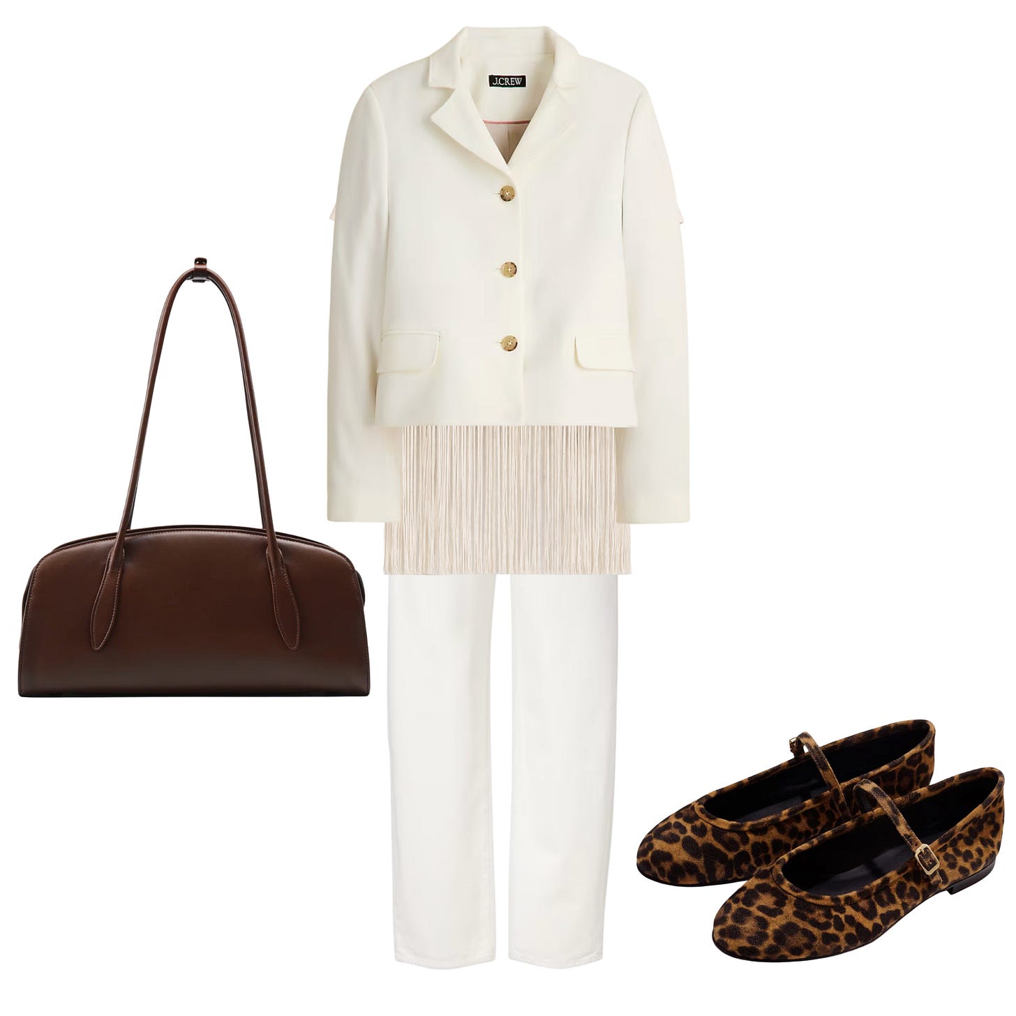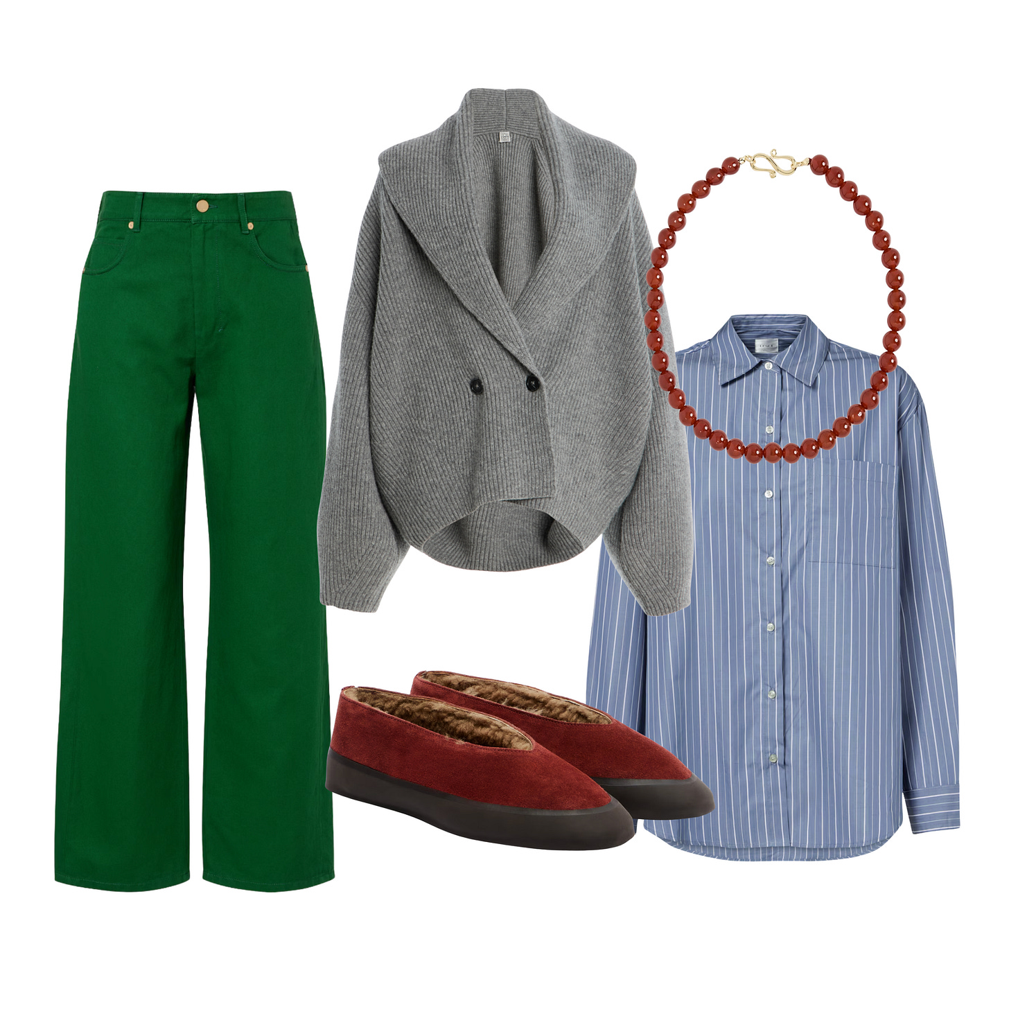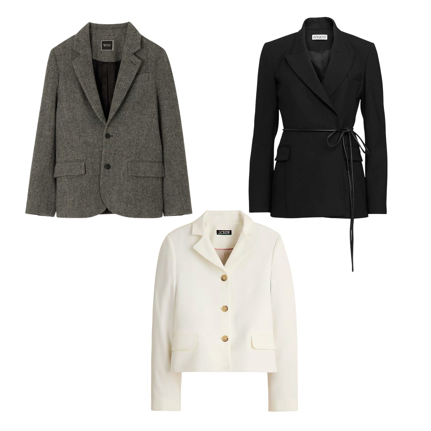 A slightly more fitted jacket that can act as a top is another reliable piece. Higher break points naturally define the waist, and many blazers can be wrapped or belted for the same effect.